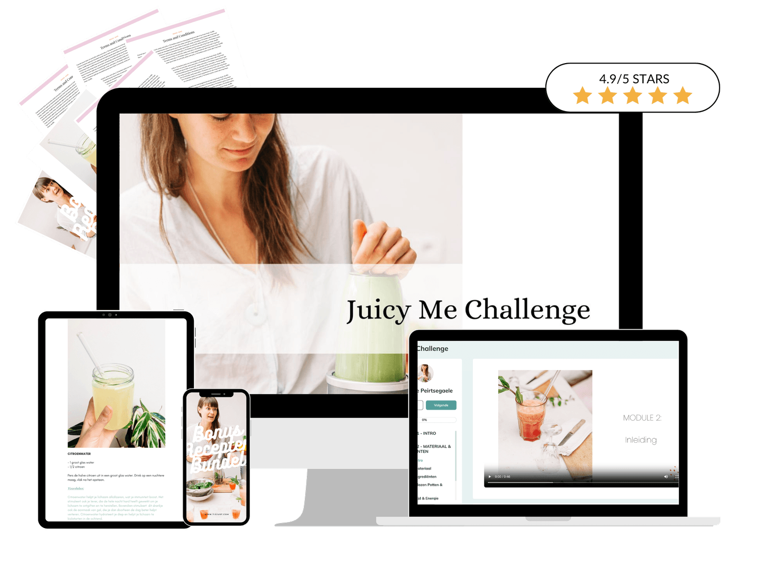 Ga meteen aan de slag, en leer stap-voor-stap hoe ik het deed voor mezelf en met andere klanten. Volledig op je eigen ritme, waar je ook bent op deze aardbol. De cursussen begeleiden je van A-Z in je specifieke doelen. Momenteel zijn de deuren geopend (mét uitzonderlijke promo) voor de Juicy Me Challenge! Zodat je je gezondheid op een 100% natuurlijke manier terug in balans kan brengen.